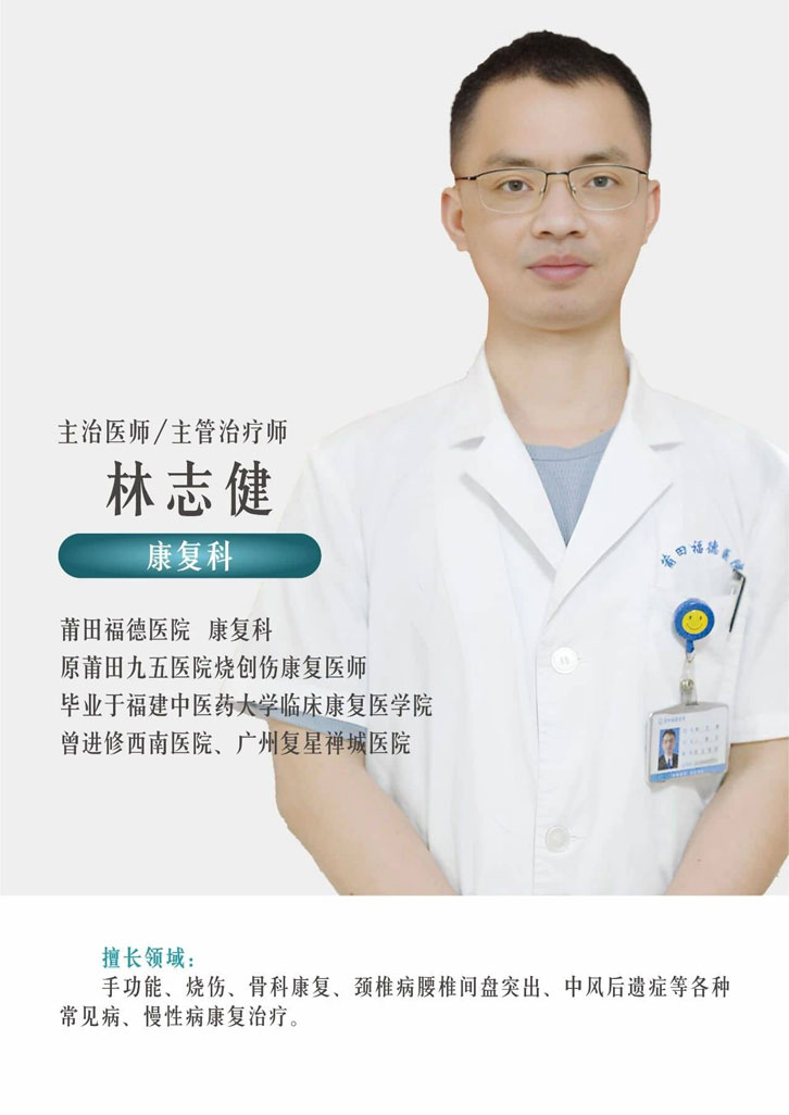 擅长领域: 治疗中风后遗症、面瘫、神经痛等神经系统疾病,各种痛症、扭伤、急性软组织损伤、慢性劳损等运动系统疾病,各种常见病、慢性病及疑难杂症的康复治疗。